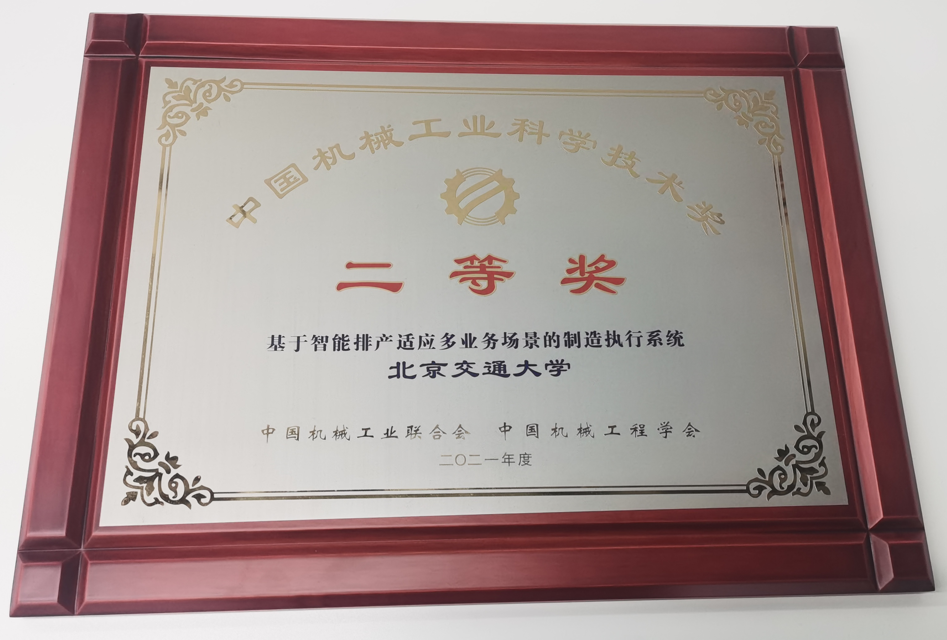 由实验室协同北京机械工业自动化研究所有限公司、北京理工大学和北京邮电大学研发的“基于智能排产适应多业务场景的制造执行系统”荣获2021年度中国机械工业科学技术奖二等奖!实验室荆涛、霍炎、朱明皓、高勃四名老师分别作为第二、第三、第七和第十一 名主要完成人,该项目是实验室取得的产学研用又一标志性成果。
